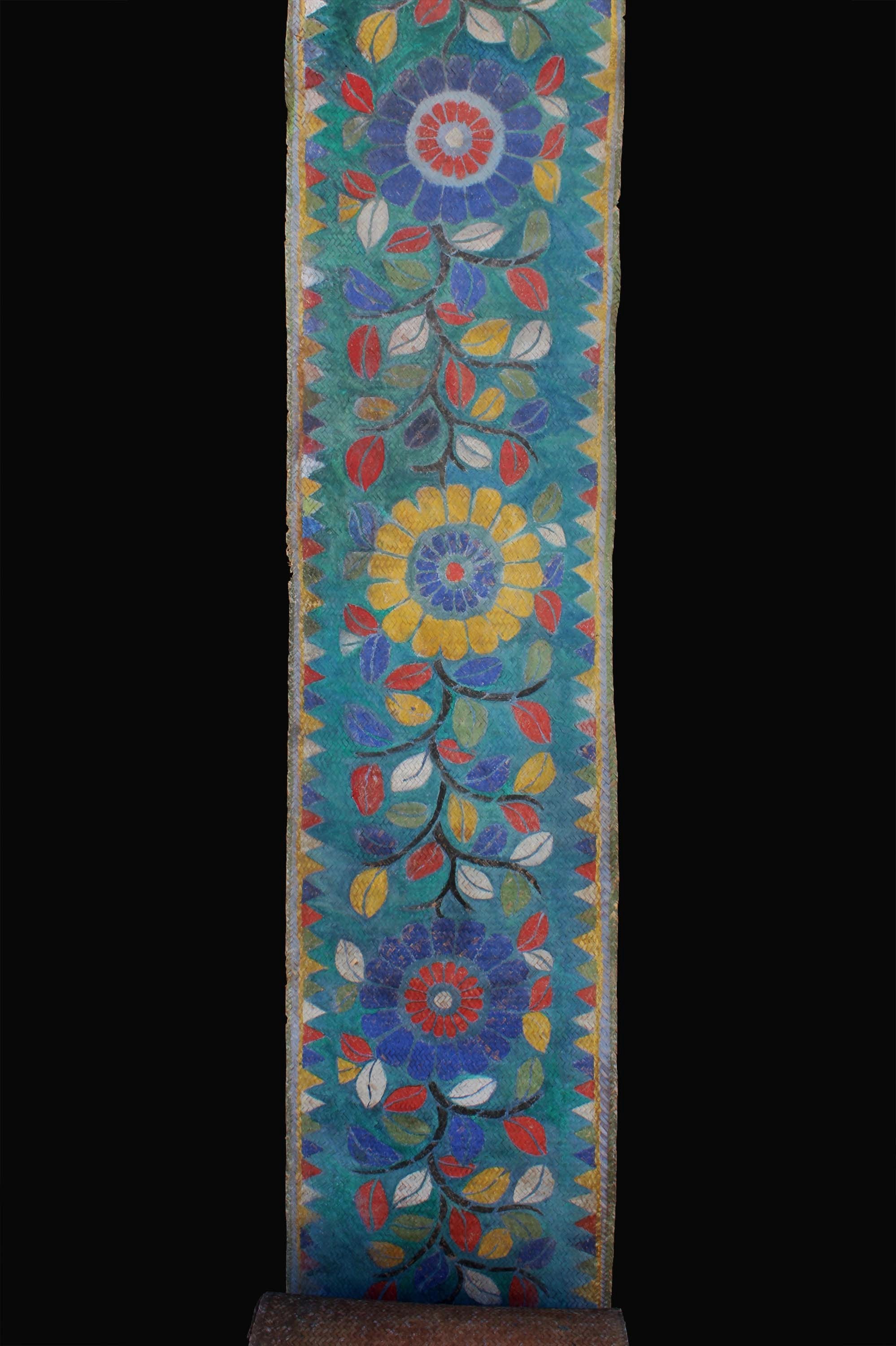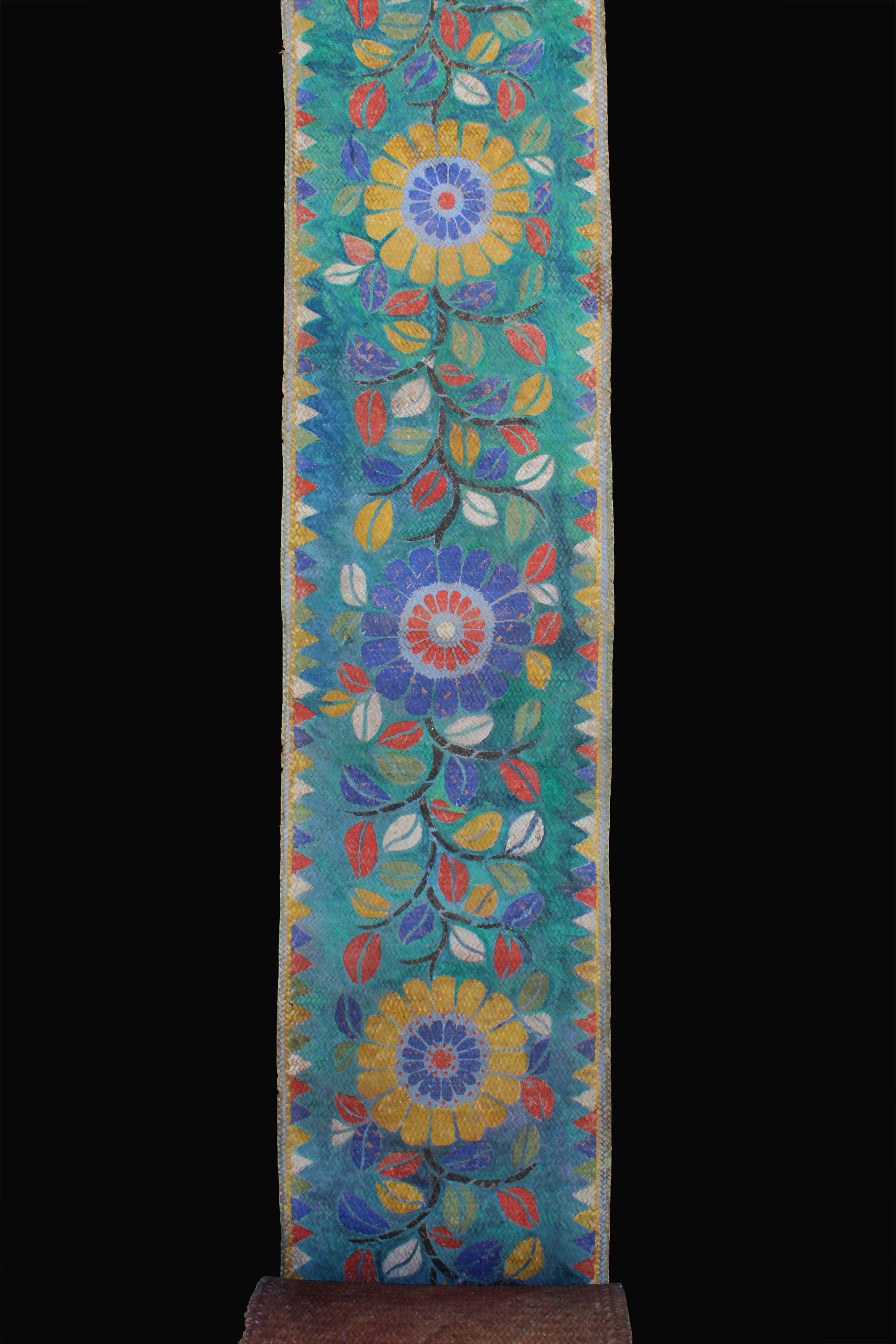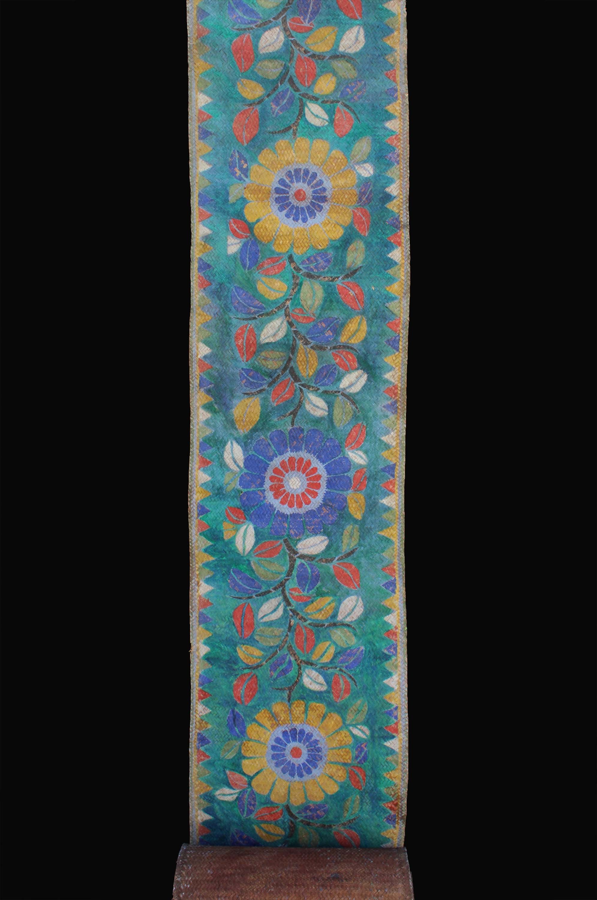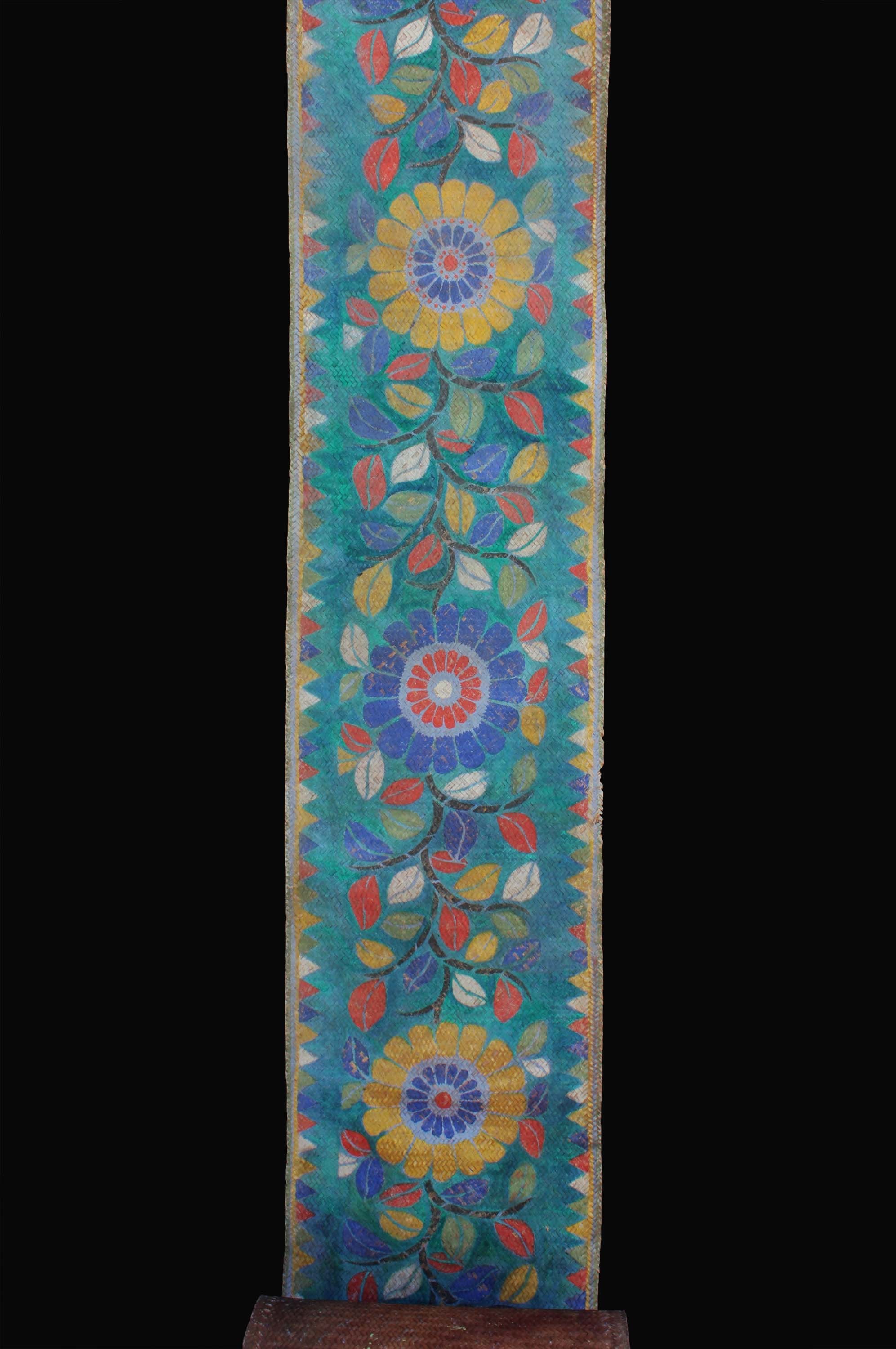 An extremely rare and extra long painted mat with 16 floral motifs. The mat was laid down before the