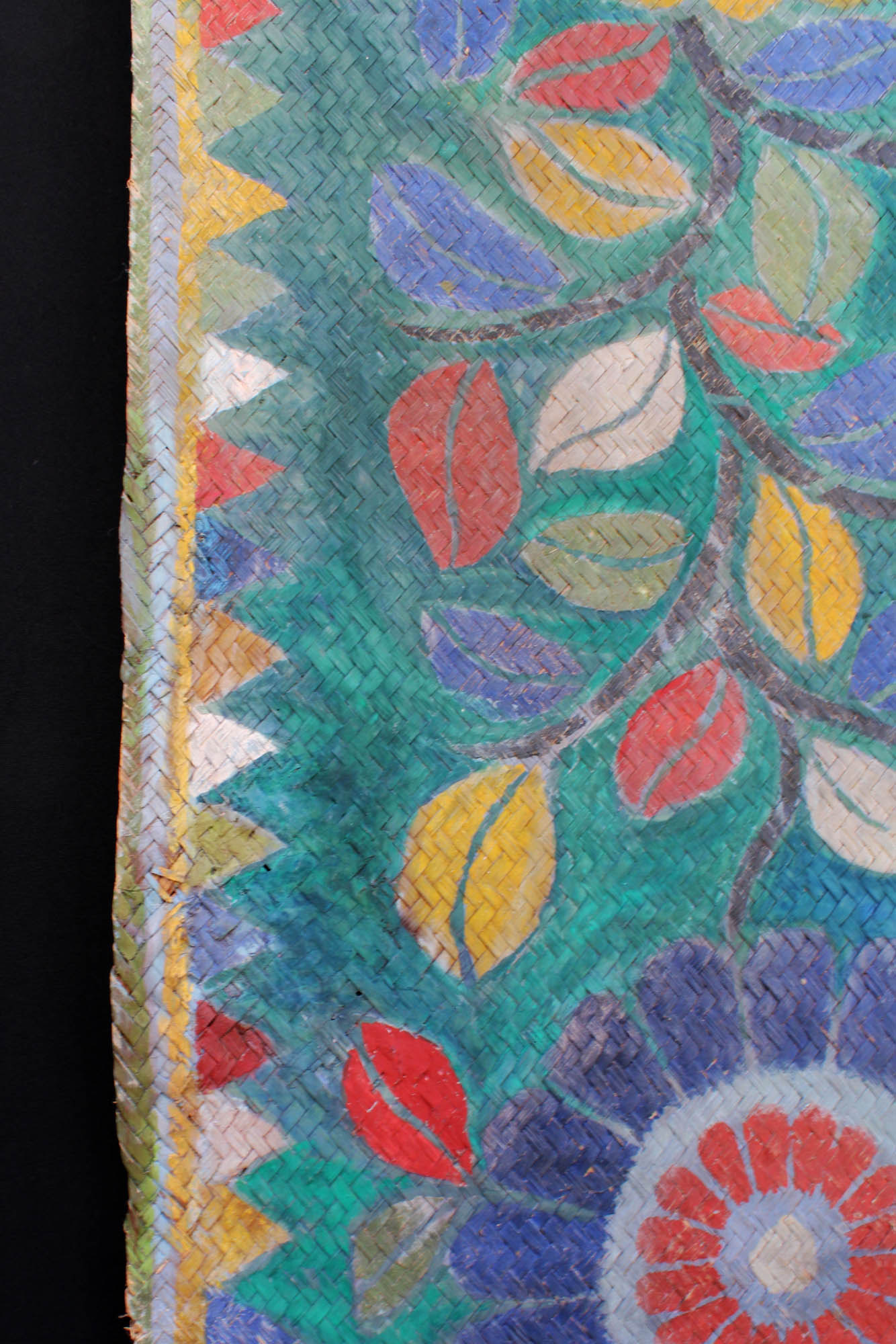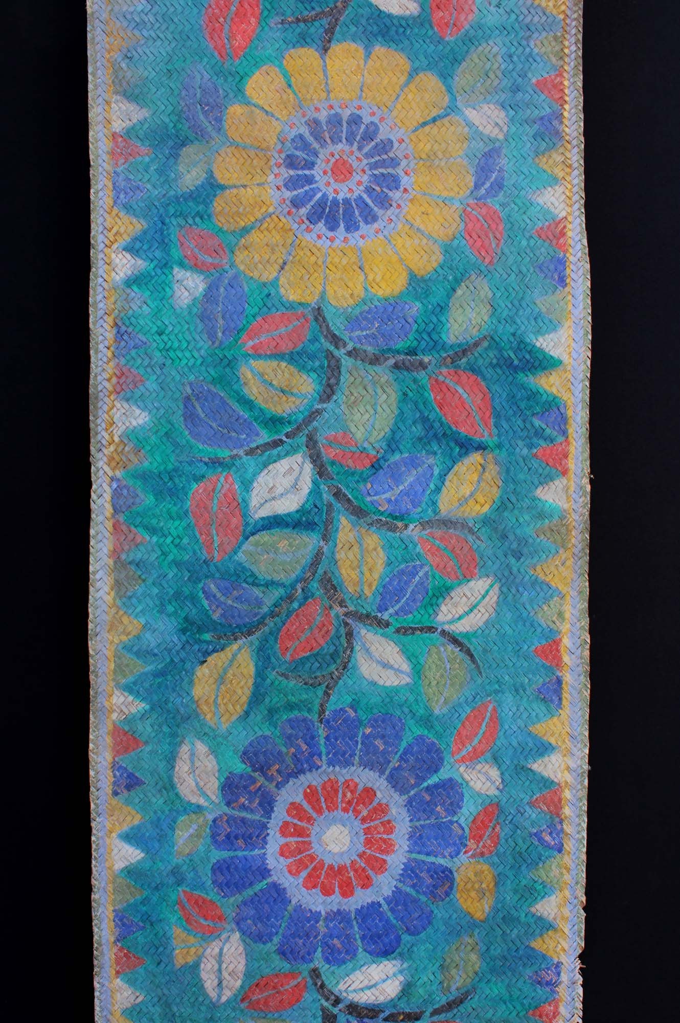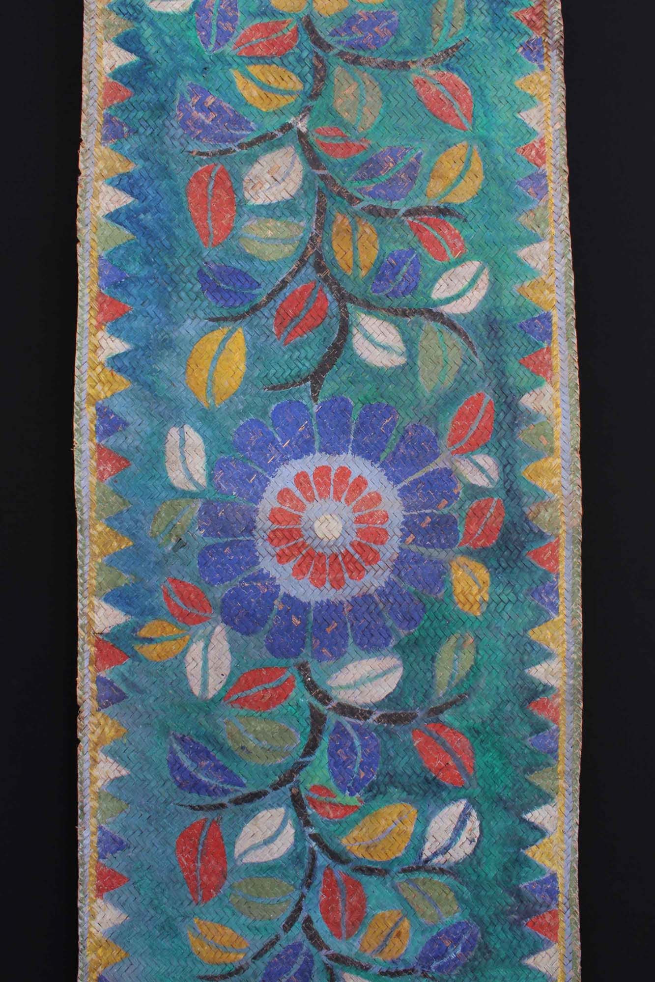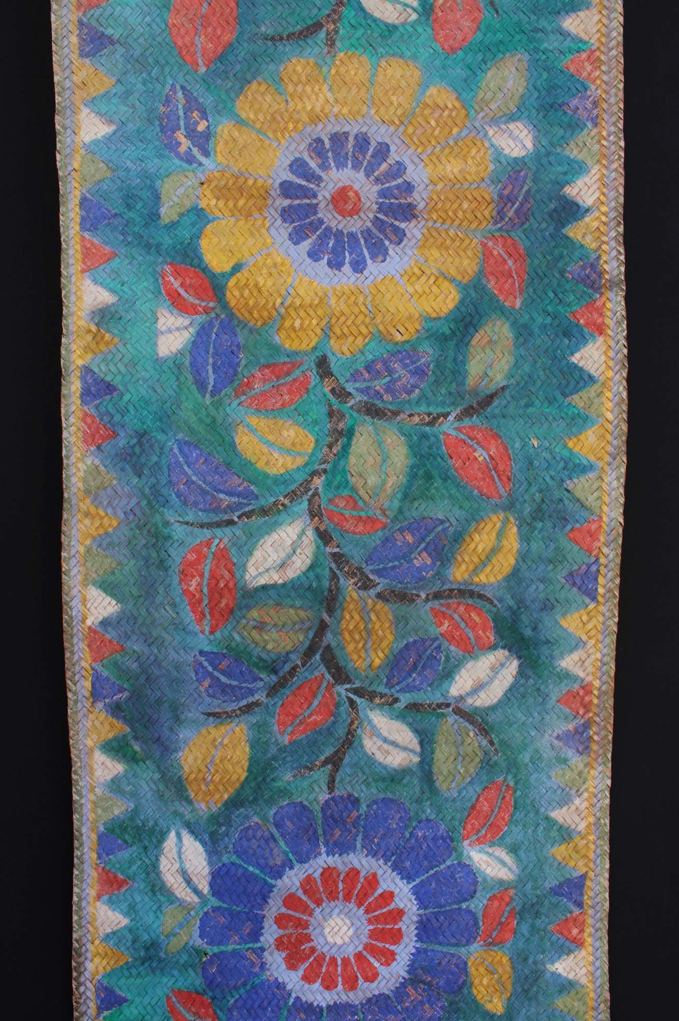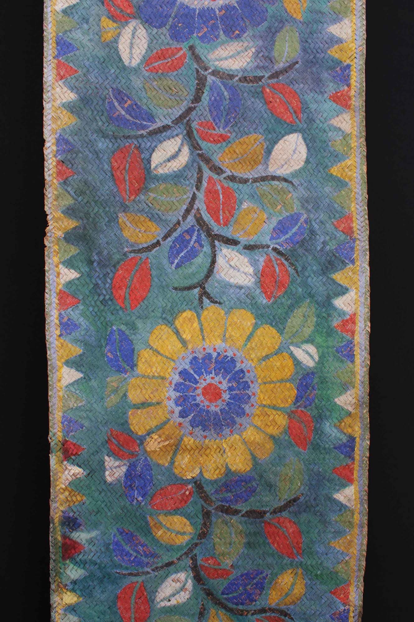 An extremely rare and extra long painted mat with 16 floral motifs. The mat was laid down before the