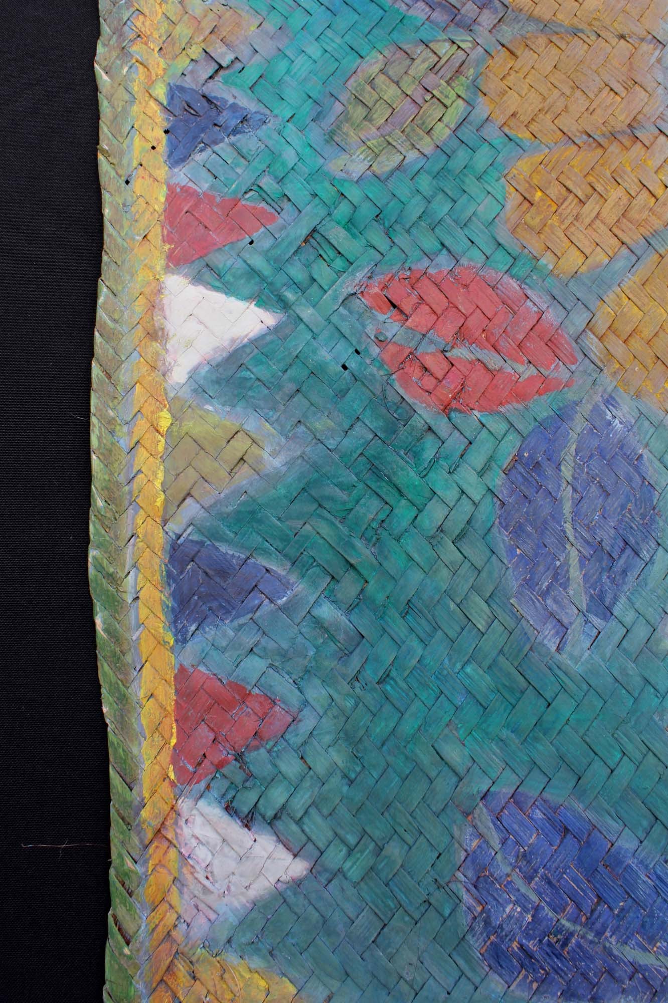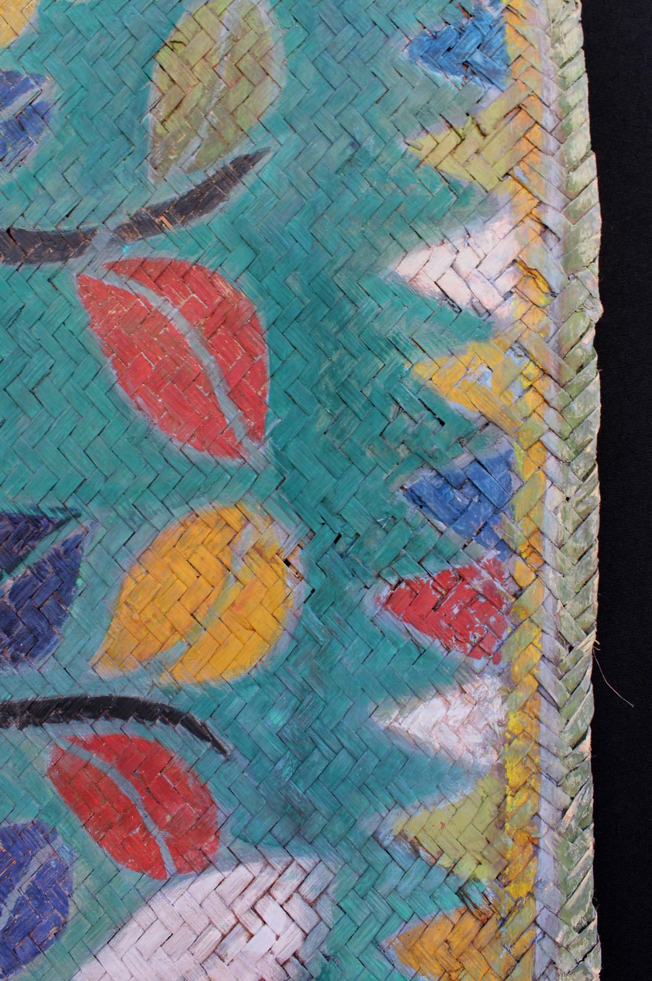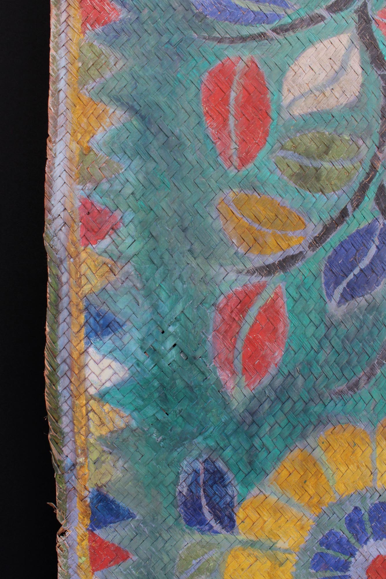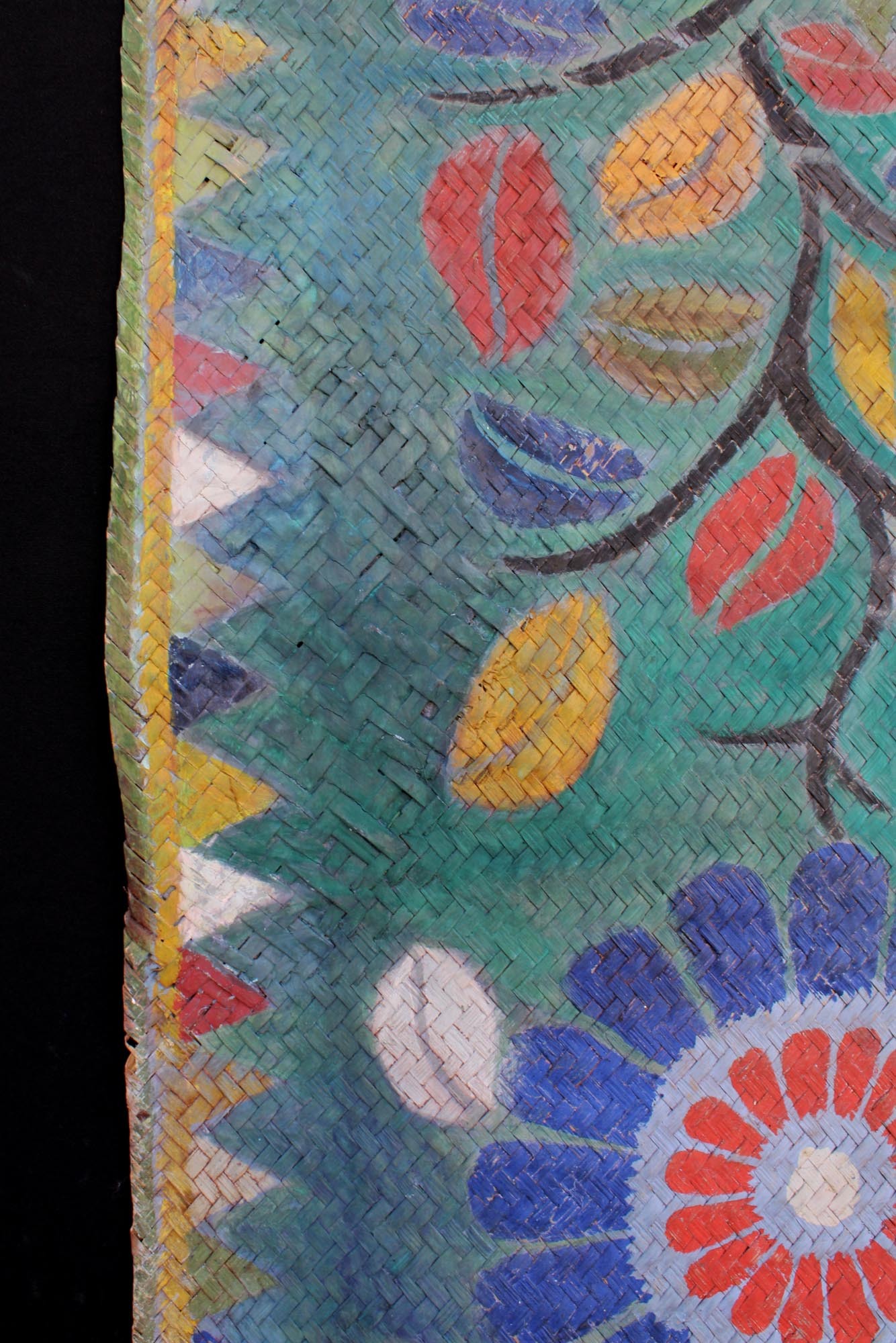 An extremely rare and extra long painted mat with 16 floral motifs. The mat was laid down before the